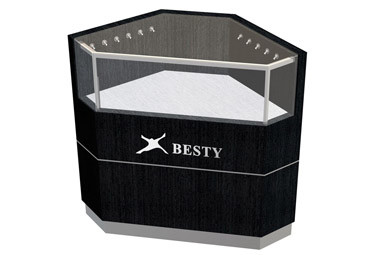 Abnormal Shape Timber Veneered MDF Showcase Featuring LED Lightings